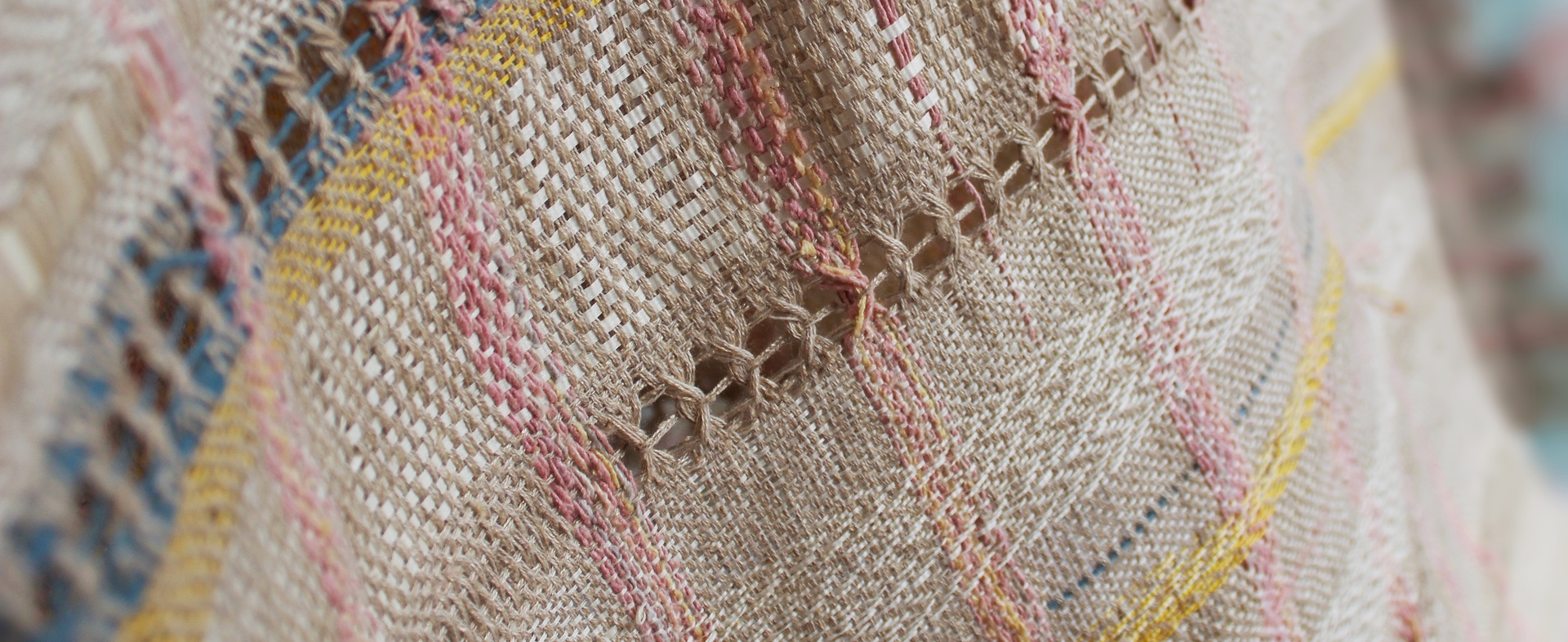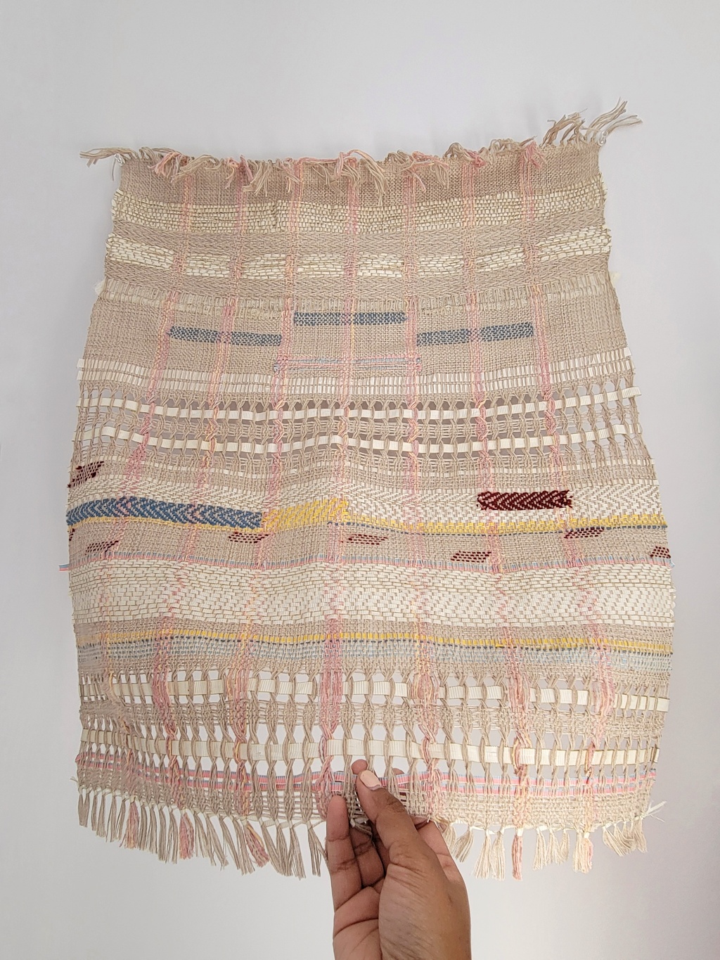 11" X 20.5" cotton, wool, wooden dowel (sold)