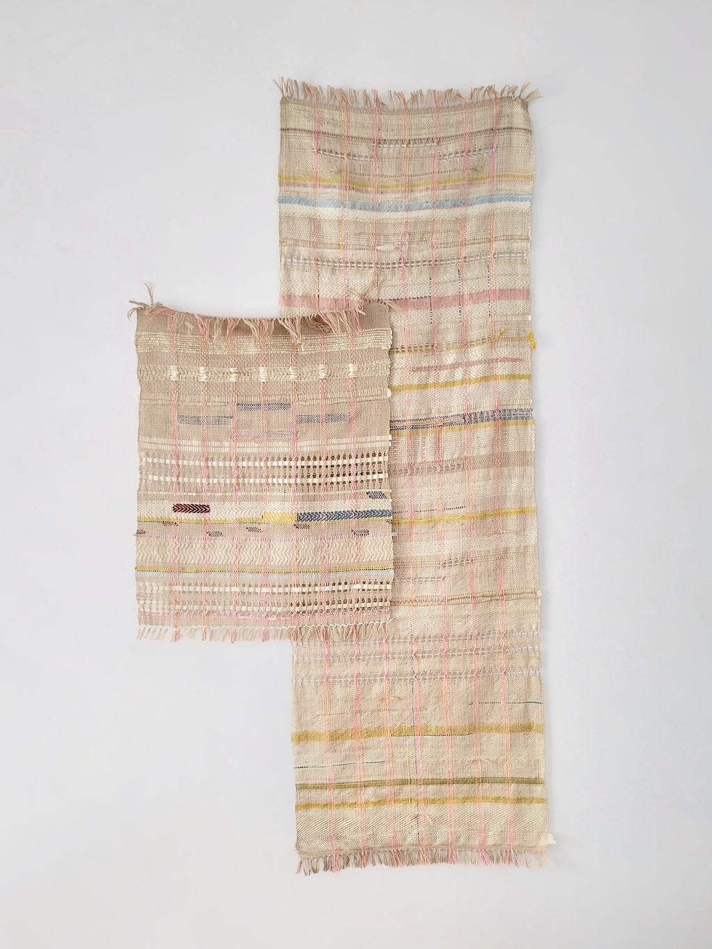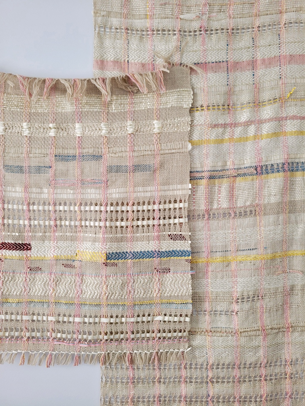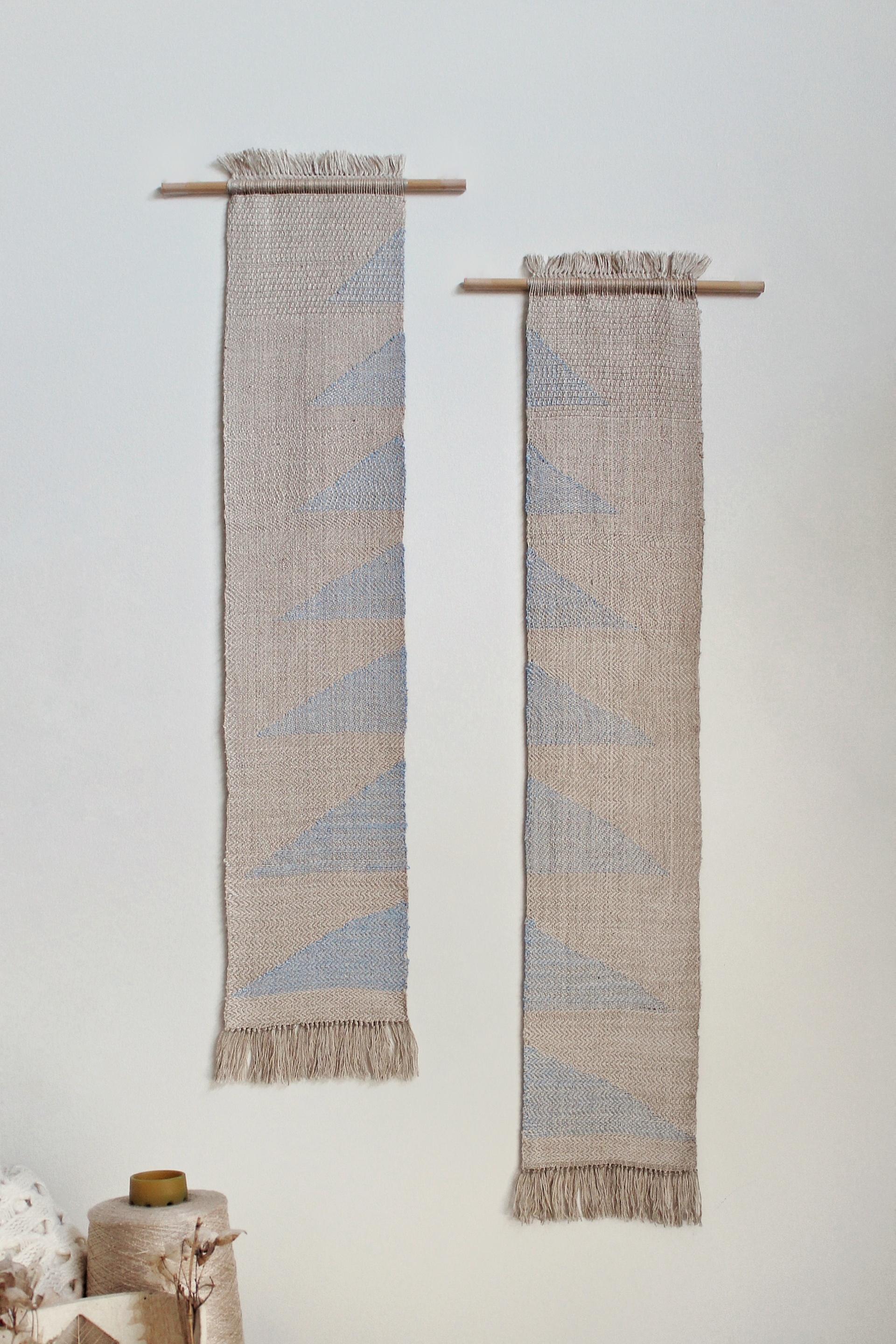 5.5" X 28" cotton, linen, wooden dowels (sold)