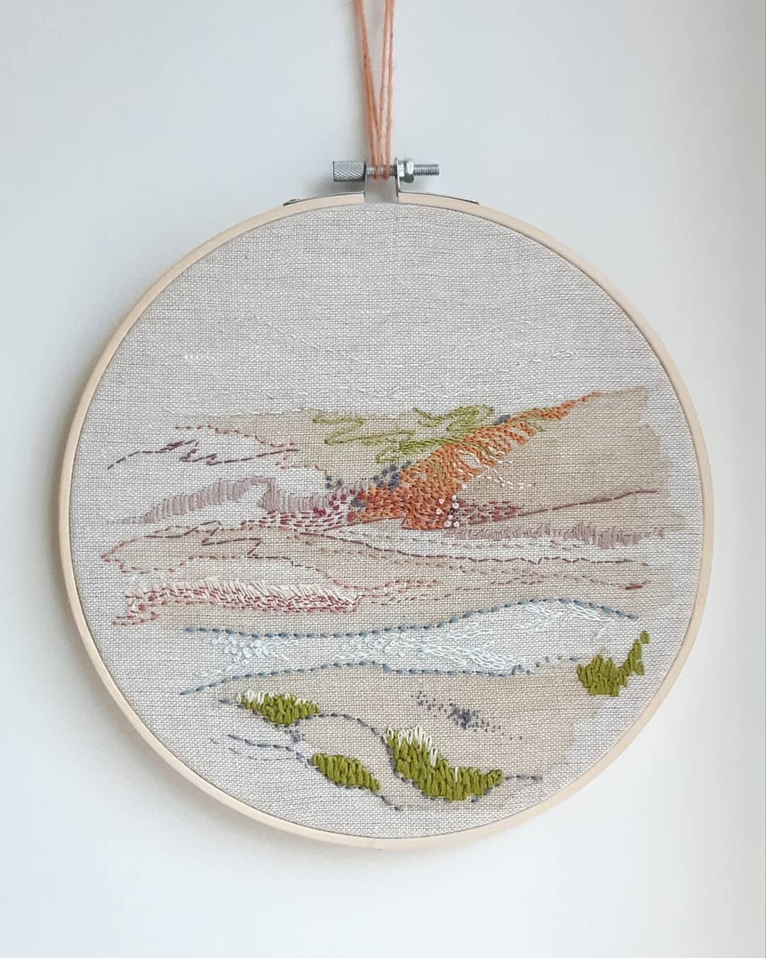 July 2019. hand embroidery on linen, 8" diameter (sold)