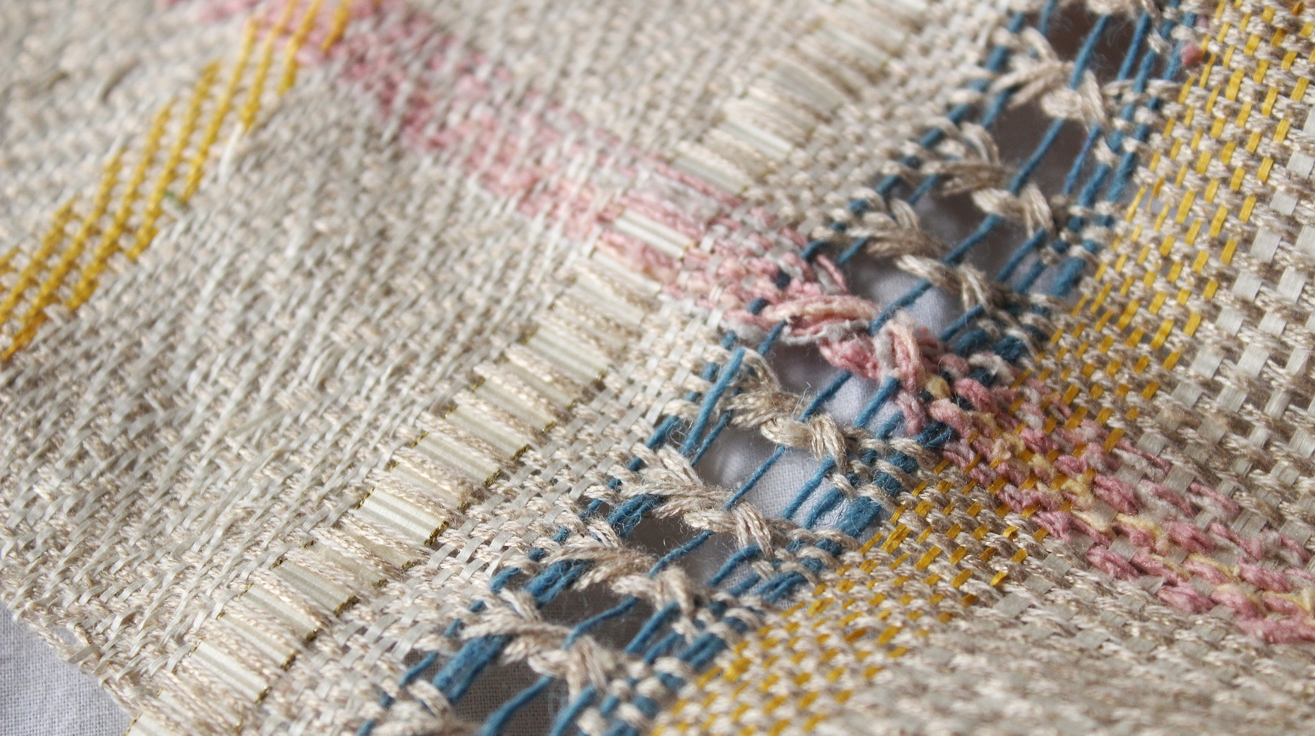 72" x 24" - vintage ribbons, wool, linen, silk tweed (sold, commissioned)